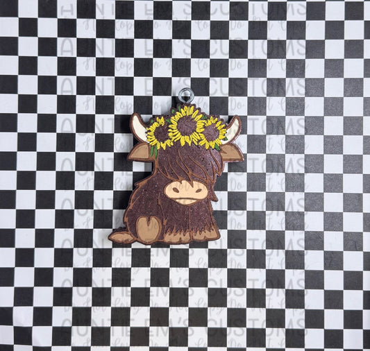 Sunflower cute highland cow
