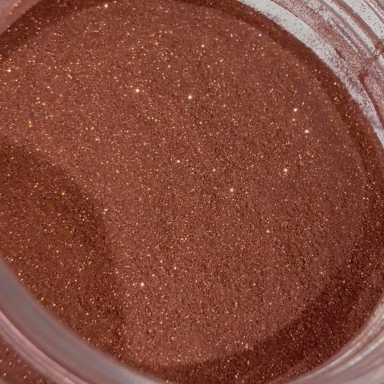 Rich auburn-orange gold with warm copper undertones and a soft metallic sparkle.