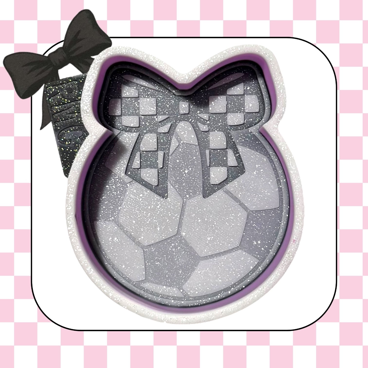 Soccer ball with checkered bow